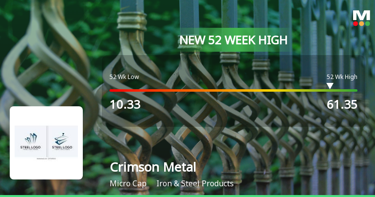 2026-01-19 10:30:07Crimson Metal Engineering Company Ltd, a key player in the Iron & Steel Products sector, reached a significant milestone today by hitting a new 52-week high of Rs.61.35. This achievement marks a continuation of the stock’s robust upward momentum, reflecting strong market performance amid a challenging broader index environment.