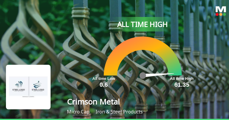 2026-01-19 10:33:05Crimson Metal Engineering Company Ltd, a key player in the Iron & Steel Products sector, reached a new all-time high of Rs.61.35 today, marking a significant milestone in its market journey. The stock’s robust performance over recent months has culminated in this record peak, reflecting sustained investor confidence and strong price momentum.