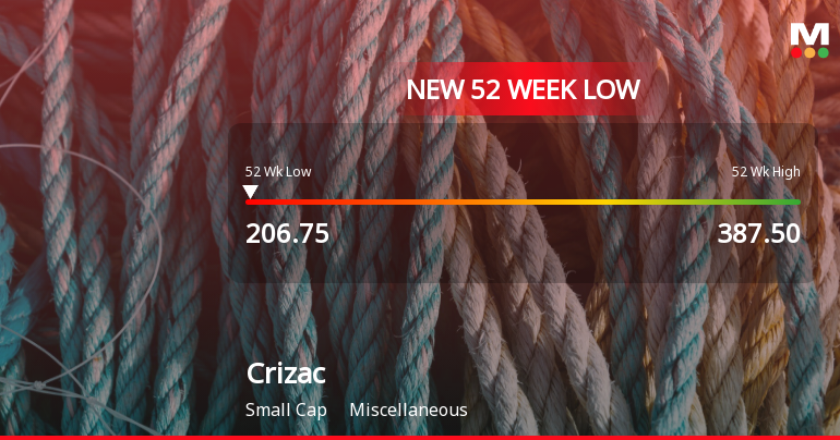 13 Mar: New 52-week and all-time low of Rs.204.4 recorded; week closes at Rs.201.85 (-8.52%)