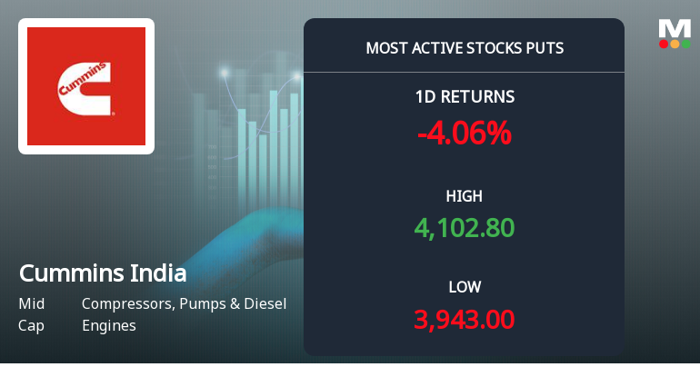 On the day in question, the Diesel Engines sector, to which Cummins India belongs, fell by 3.07%, signalling a broader sector weakness that has weighed on the stock. The intraday low of ₹3,916.75, representing a 3.74% drop, was ...