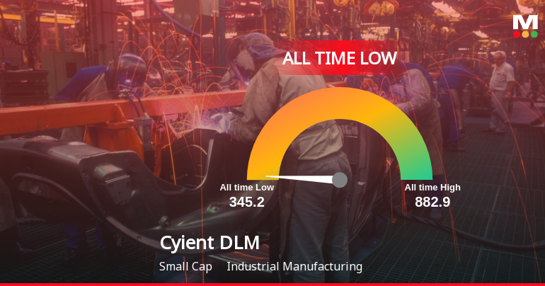 2026-02-06 15:43:47Cyient DLM Ltd’s shares declined to a fresh 52-week low of Rs.345 on 6 Feb 2026, marking a significant downturn for the industrial manufacturing company. The stock has underperformed its sector and broader market indices, reflecting ongoing pressures on its financial performance and valuation metrics.