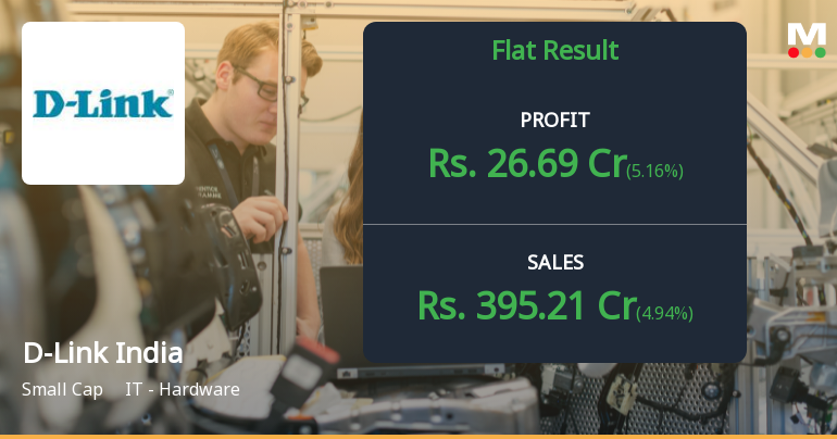 2026-02-05 20:02:10D-Link (India) Limited, a prominent player in the IT hardware sector with a market capitalisation of ₹1,494 crores, has reported mixed results for Q2 FY26 (July-September 2025), with net profit declining 5.01% year-on-year to ₹25.38 crores despite revenue growth. The stock has been under sustained pressure, falling 15.03% over the past year and trading 30.04% below its 52-week high of ₹588.90. At the current market price of ₹412.00, the company faces growing concerns about margin sustainability and profitability trends despite maintaining a robust balance sheet with zero debt and strong return ratios.