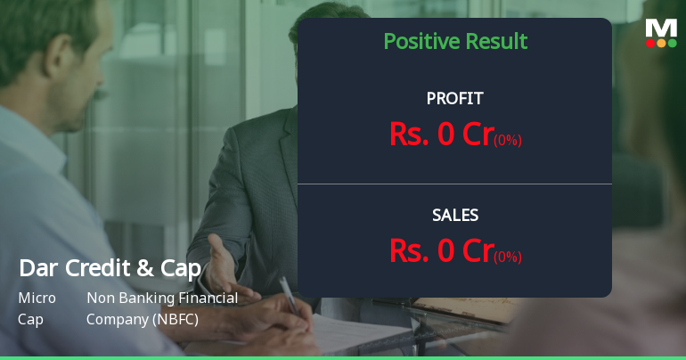 2026-02-12 09:58:02Dar Credit & Capital Ltd., a micro-cap non-banking financial company specialising in personal and MSME loans, reported its strongest quarterly performance in Q3 FY26 (October-December 2025) with net profit climbing to ₹2.52 crores, marking a modest 0.80% sequential increase from Q2 FY26 and a robust 40.00% year-on-year surge. However, the stock has faced significant headwinds, declining 22.17% over the past three months to trade at ₹43.00, reflecting investor concerns about the company's weak fundamental strength and modest institutional backing despite attractive valuation multiples.