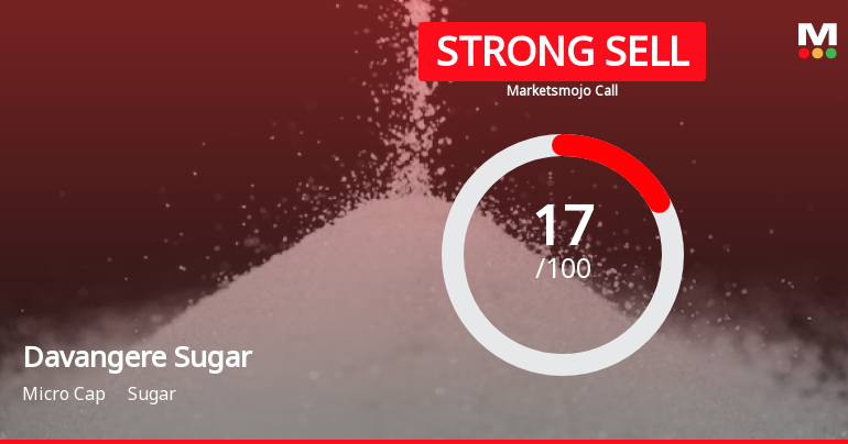 2026-02-25 10:10:04Davangere Sugar Company Ltd is rated 'Sell' by MarketsMOJO, with this rating last updated on 30 December 2025. However, the analysis and financial metrics discussed here reflect the stock's current position as of 25 February 2026, providing investors with an up-to-date view of the company’s fundamentals, returns, and market performance.