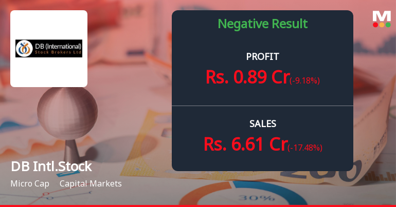 2026-01-24 19:13:22DB (International) Stock Brokers Ltd has reported challenging financial results for the quarter ended December 2025. The company experienced a significant decline in net sales, which fell to ₹6.61 crores, representing a 17.48% decrease from the previous quarter and a 27.76% drop year-on-year. This marks the lowest quarterly revenue in recent periods, indicating persistent challenges within the brokerage industry, particularly due to subdued trading activity. Net profit for the same quarter was reported at ₹0.89 crores, down 9.18% sequentially and 13.59% compared to the same quarter last year. Despite these declines in revenue and profitability, the company demonstrated resilience in its operating margins, which stood at 27.23%, an increase of 960 basis points year-on-year. This suggests effective cost management measures in place, even amidst declining revenues. Over the nine-month period for FY26, DB (In...