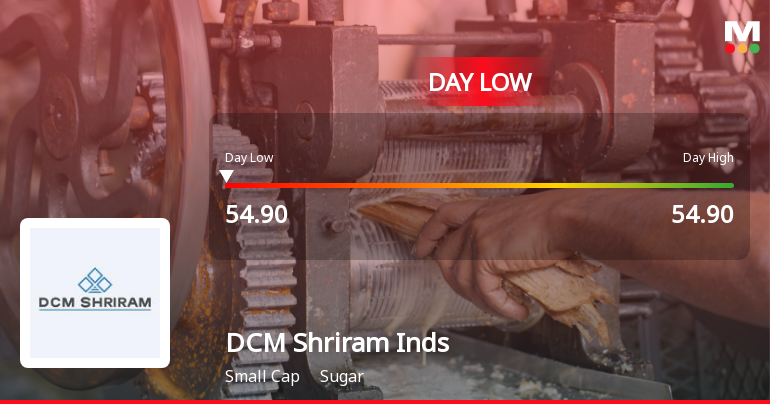 2025-12-26 09:52:56Shares of DCM Shriram Industries touched a new 52-week low today, trading at Rs 54.9, reflecting significant intraday price pressure. The stock underperformed its sector and broader market indices, marking a notable reversal after three consecutive days of gains.