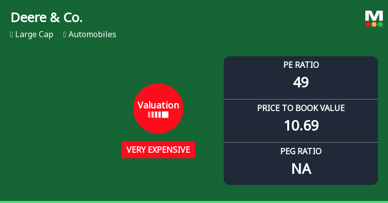 2025-10-27 15:39:46Deere & Co. has recently adjusted its valuation metrics, showcasing a P/E ratio of 49 and a price-to-book value of 10.69. The company's financial performance includes a ROCE of 12.69% and a ROE of 21.95%. Its stock has returned 11.58% year-to-date, reflecting competitive dynamics in the automobiles sector.