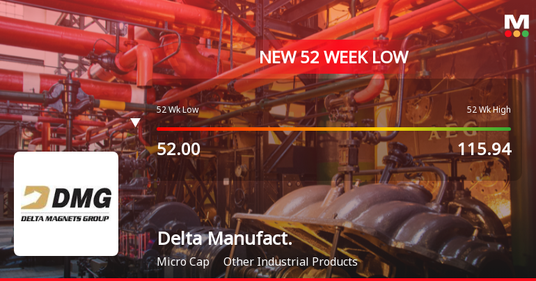 2026-03-16 13:19:07Delta Manufacturing Ltd, a micro-cap player in the Other Industrial Products sector, has reached a new 52-week low of Rs.52 today, marking a significant decline in its stock price amid broader market fluctuations and company-specific performance issues.