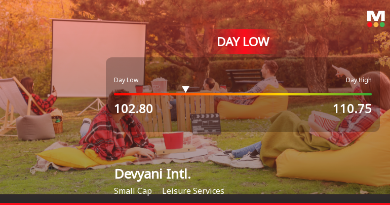 Devyani International Ltd witnessed a significant intraday decline, touching a fresh 52-week low of Rs 102.9 as the stock faced notable price pressure in a broadly subdued market environment.