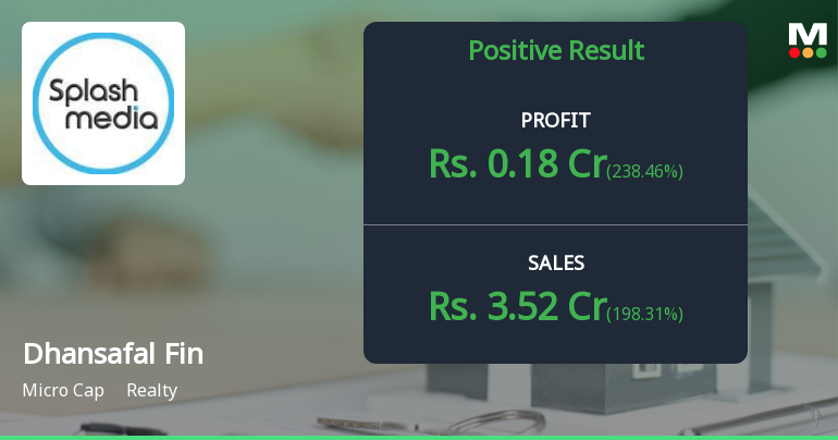 2026-02-14 08:39:39Dhansafal Finserve Ltd., a micro-cap realty company with a market capitalisation of ₹53.00 crores, reported a return to profitability in Q3 FY26 with net profit of ₹0.18 crores, marking a sharp reversal from the ₹0.10 crore loss in Q2 FY26. However, the quarterly profit gain belies mounting concerns about operational sustainability, with the stock plunging 51.00% over the past year to ₹2.44, significantly underperforming both the broader market and the realty sector.