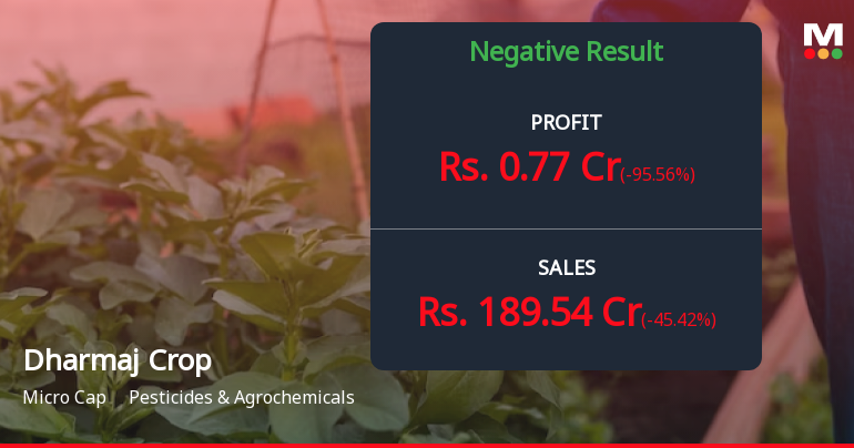 2026-02-11 09:49:40Dharmaj Crop Guard Limited, a micro-cap agrochemical manufacturer with a market capitalisation of ₹816.71 crores, reported a concerning Q3 FY26 performance that has sent alarm bells ringing amongst investors. The company posted a net profit of just ₹0.76 crores for the quarter ended December 2025, representing a precipitous 95.61% decline quarter-on-quarter and a 35.59% drop year-on-year. The stock has reacted negatively, trading at ₹241.65 as of February 11, down 3.8% from the previous close and sitting 38.24% below its 52-week high of ₹391.25.