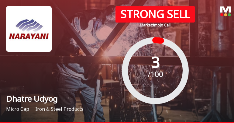 2026-03-19 10:10:34Dhatre Udyog Ltd is rated Strong Sell by MarketsMOJO, with this rating last updated on 16 July 2024. However, the analysis and financial metrics discussed here reflect the stock’s current position as of 19 March 2026, providing investors with an up-to-date view of the company’s fundamentals, returns, and overall outlook.