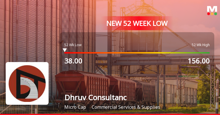 "description": "Dhruv Consultancy Services Ltd has touched a new 52-week low of Rs.38 today, marking a significant decline in its stock price amid ongoing pressures in the commercial services sector. The stock’s recent performance reflects a continuation of downward trends, with the share price now substantially below key moving averages and historical highs."