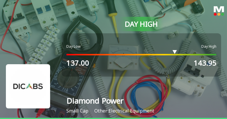 2026-02-16 10:17:21Diamond Power Infrastructure Ltd demonstrated robust intraday strength on 16 Feb 2026, surging to an intraday high of Rs 143.9, marking a 9.22% rise from its previous close. The stock outperformed its sector and broader market indices, reflecting a notable rebound after two days of decline.