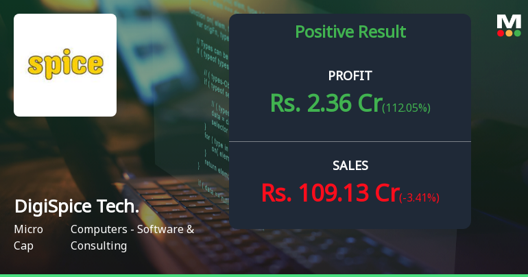 "description": "DigiSpice Technologies Ltd, a player in the Computers - Software & Consulting sector, has posted a mixed set of quarterly results for December 2025, reflecting a shift from very positive to positive financial trends. While profit metrics have shown remarkable growth, the company faces challenges with declining sales and cash reserves, prompting a downgrade in its Mojo Grade from Hold to Sell."