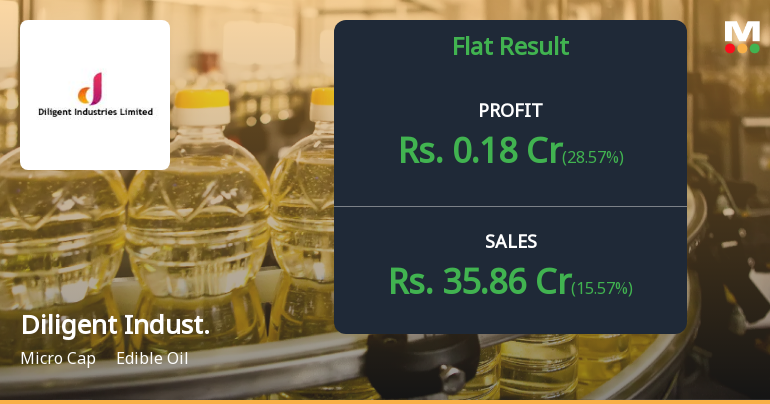 2026-02-16 17:49:32Diligent Industries Ltd., a micro-cap edible oil manufacturer with a market capitalisation of ₹59.00 crores, reported a concerning quarter for Q3 FY26 (October-December 2025), with net profit plummeting 84.75% sequentially to ₹0.18 crores from ₹1.18 crores in Q2 FY26. The sharp decline came despite a modest year-on-year revenue growth of 15.57%, as operating margins compressed dramatically from 5.62% to 3.54%. The stock reacted negatively, trading at ₹2.35 on February 16, 2026, down 6.75% from the previous close, and now sits 40.51% below its 52-week high of ₹3.95.