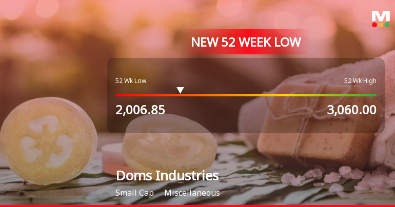 Doms Industries Ltd Stock Falls to 52-Week Low of Rs 2006.85