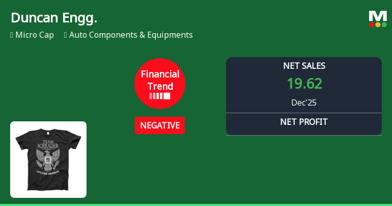2026-02-16 08:00:35Duncan Engineering Ltd, a key player in the Auto Components & Equipments sector, has reported a notable shift in its financial trajectory for the quarter ended December 2025. Despite a historically resilient performance, the company’s latest results reveal a downturn in revenue growth and margin expansion, prompting a downgrade in its financial trend assessment from flat to negative. This article analyses the recent quarterly performance in the context of its historical trends and broader market movements.