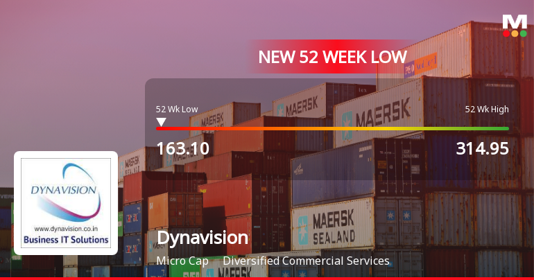 2026-02-26 13:35:49Dynavision Ltd’s shares declined sharply to a fresh 52-week low of Rs.163.1 on 26 Feb 2026, marking a significant milestone in the stock’s ongoing downward trajectory. This new low reflects a sustained period of underperformance relative to both its sector and the broader market indices.