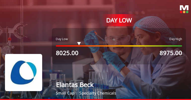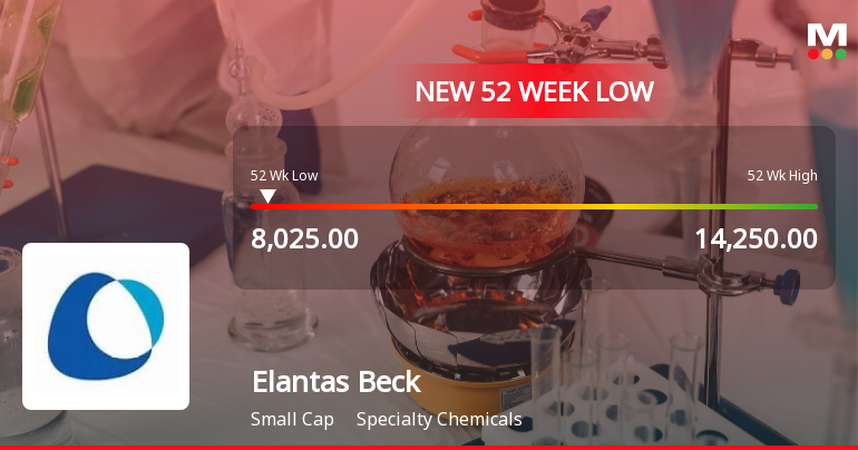 2026-01-29 15:40:46Elantas Beck India Ltd’s stock declined sharply to a new 52-week low of Rs 8,025 on 29 Jan 2026, marking a significant drop amid broader market movements. The stock underperformed its sector and has been on a downward trajectory over the past two days, reflecting ongoing concerns within the specialty chemicals segment.