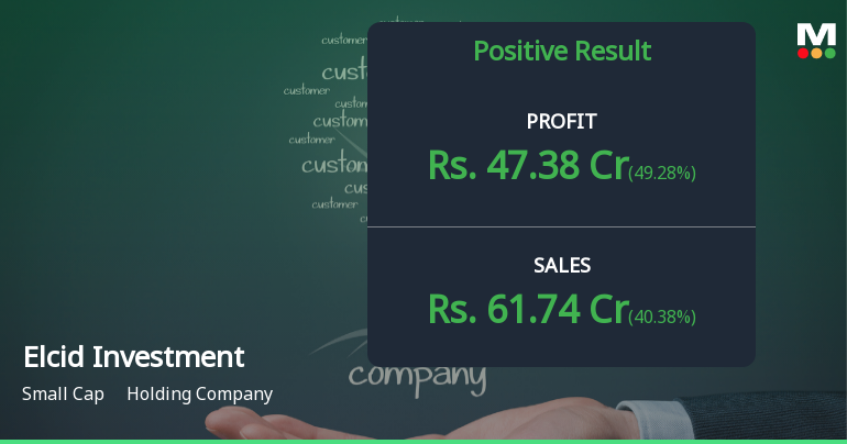 2026-01-28 18:15:39Elcid Investments Ltd., a small-cap holding company with a market capitalisation of ₹2,320 crores, reported a consolidated net profit of ₹47.38 crores for Q3 FY26 (October-December 2025), representing a sequential recovery of 49.28% from Q2 FY26's ₹31.74 crores. However, the year-on-year comparison paints a starkly different picture, with profits plunging 787.66% from a loss of ₹6.89 crores in Q3 FY25, reflecting the company's volatile earnings trajectory.