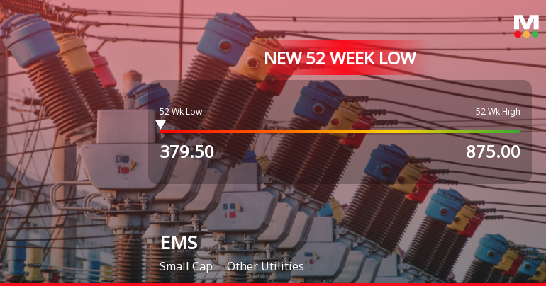 2026-01-12 13:26:46EMS Ltd, a player in the Other Utilities sector, has reached a new 52-week low of Rs.387.85 today, marking a significant decline in its stock price amid a sustained downward trend over recent sessions.