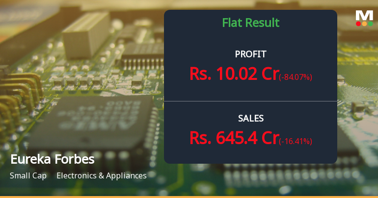 2026-02-04 14:36:11Eureka Forbes Limited reported a concerning third quarter for FY2026, with consolidated net profit plummeting 71.41% year-on-year to ₹10.02 crores, despite posting revenue growth of 7.97%. The sharp profit decline, coupled with a dramatic 84.07% sequential drop from Q2 FY26's ₹62.90 crores, has sent the stock tumbling 6.75% to ₹507.80, erasing significant shareholder value in the small-cap electronics and appliances manufacturer.