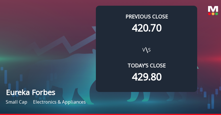 2026-03-06 11:16:12Eureka Forbes Ltd, a key player in the Electronics & Appliances sector, has reached a new 52-week low of Rs.414, marking a significant decline amid a challenging market environment. The stock has experienced a sustained downward trend, reflecting a combination of financial performance concerns and market pressures.