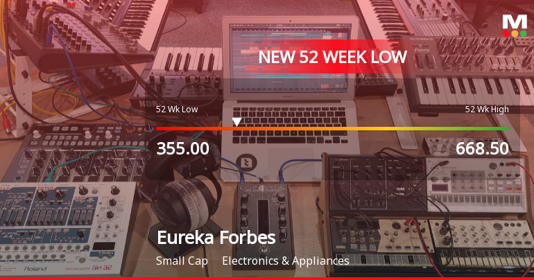 2026-03-09 13:59:03Eureka Forbes Ltd’s share price declined sharply to a new 52-week low of Rs.355 on 9 Mar 2026, marking a significant downturn amid a sustained period of negative returns and broader market weakness.