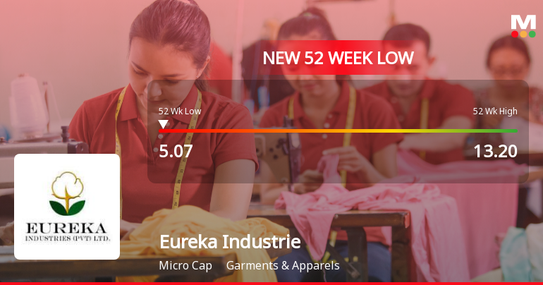 2026-02-06 11:15:56Eureka Industries Ltd, a player in the Garments & Apparels sector, has touched a new 52-week low of Rs.5.09 today, marking a significant decline amid a broader market that remains relatively stable. The stock’s recent performance highlights ongoing concerns about its financial health and valuation metrics.