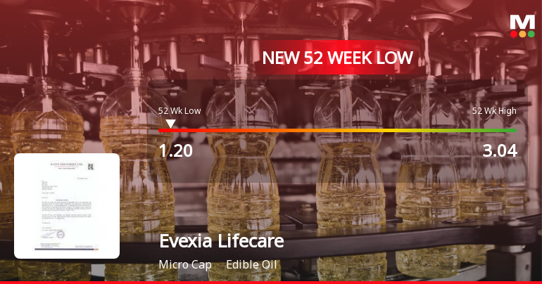 Evexia Lifecare’s stock has been on a downward trajectory over multiple time horizons. In the past week, the share price fell by 6.71%, underperforming the Sensex’s 5.52% decline. The trend extends over longer periods, with the stock losing 12.03% in the last month and 15.24% year-to-date, both figures exceeding the respective Sensex declines of 9.76% and 12.50%. Most strikingly, the stock has plummeted 45.70% over the last year, while the Sensex posted a modest gain of 1.00% during the same period. This stark contrast highlights the company’s struggles amid a generally resilient market environment.