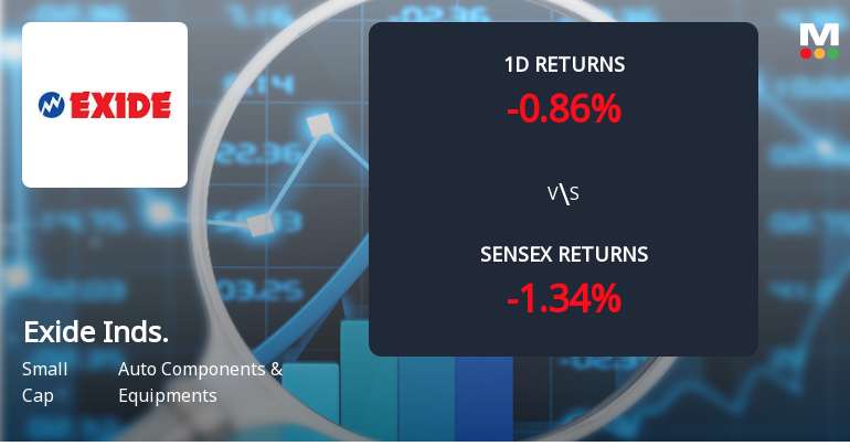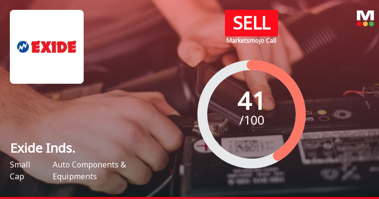 2026-03-10 10:10:18Exide Industries Ltd is rated 'Sell' by MarketsMOJO, with this rating last updated on 22 December 2025. However, the analysis and financial metrics discussed here reflect the stock's current position as of 10 March 2026, providing investors with the latest insights into the company’s performance and outlook.