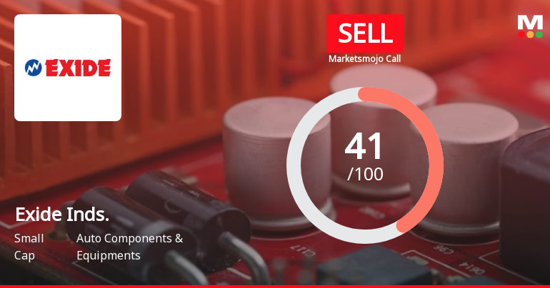 2026-02-27 10:10:17Exide Industries Ltd is rated 'Sell' by MarketsMOJO, with this rating last updated on 22 December 2025. However, the analysis and financial metrics discussed here reflect the stock's current position as of 27 February 2026, providing investors with an up-to-date view of the company’s performance and outlook.