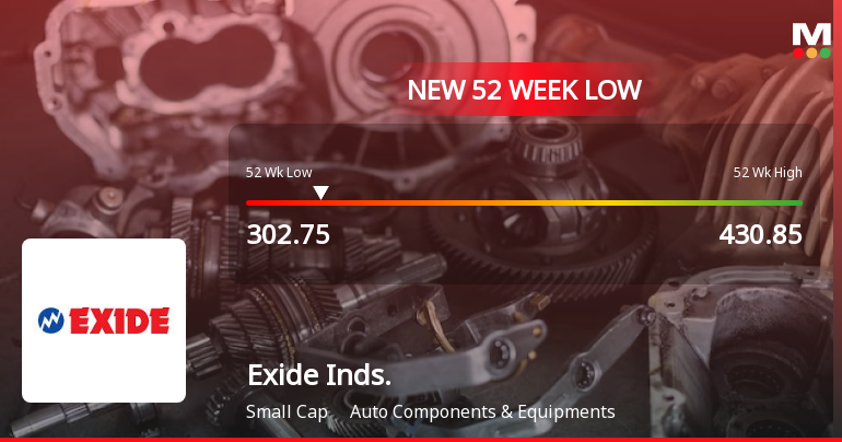 Exide Industries Ltd Falls to 52-Week Low of Rs.302.75 Amid Market Pressure