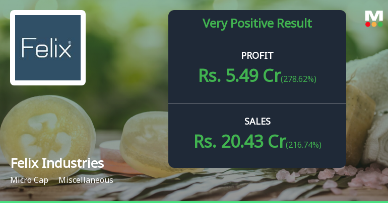 2026-02-06 10:10:50Felix Industries Ltd is rated 'Hold' by MarketsMOJO, with this rating last updated on 01 January 2026. However, the analysis and financial metrics discussed here reflect the stock's current position as of 06 February 2026, providing investors with an up-to-date perspective on the company’s performance and outlook.