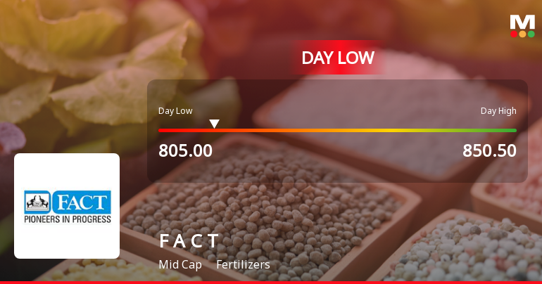 On 16 March, FACT’s shares underperformed the broader fertiliser sector, which itself declined by 2.67%. The stock touched an intraday low of ₹795.45, down 6.6% from previous levels, with a weighted average price indicating that more volume was traded near this low point. Although the stock remains above its short-term moving averages (5-day, 20-day, and 50-day), it is trading below its longer-term 100-day and 200-day averages, signalling some caution among investors. Notably, delivery volumes surged by 34.65% on 13 March compared to the five-day average, suggesting increased investor participation amid the price decline.
