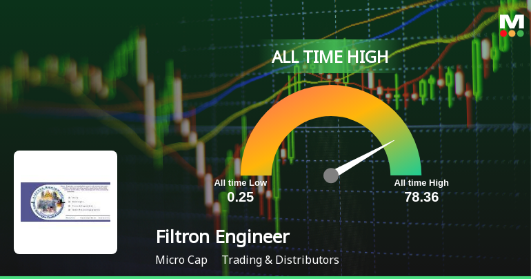 2025-12-18 10:45:49Filtron Engineers, a key player in the Trading & Distributors sector, reached a new all-time high of Rs.78.36 today, reflecting a remarkable phase of sustained gains and strong market performance over recent weeks.