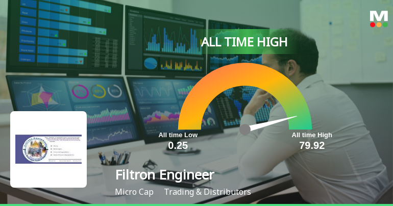 2025-12-19 10:35:23Filtron Engineers, a key player in the Trading & Distributors sector, reached a new all-time high of Rs.79.92 today, marking a significant milestone in its market journey. The stock’s performance over recent weeks has demonstrated notable momentum, reflecting a sustained upward trajectory.