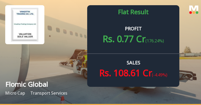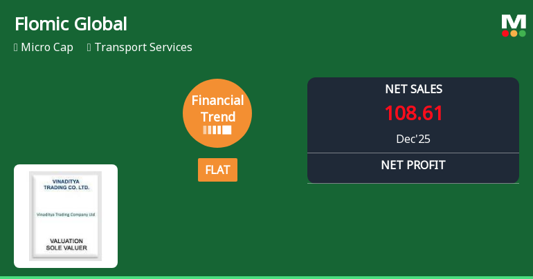 2026-01-29 09:48:15Flomic Global Logistics Limited, a micro-cap transport services provider with a market capitalisation of ₹89.97 crores, returned to profitability in Q3 FY26 with a net profit of ₹0.77 crores, reversing a loss of ₹1.01 crores in the previous quarter. However, this modest recovery was overshadowed by continued revenue contraction, with net sales declining 4.49% quarter-on-quarter to ₹108.61 crores and falling 19.30% year-on-year. The stock has faced significant selling pressure, trading at ₹49.52 as of January 29, 2026, down 25.50% over the past year and hovering just 5.91% above its 52-week low of ₹47.20.