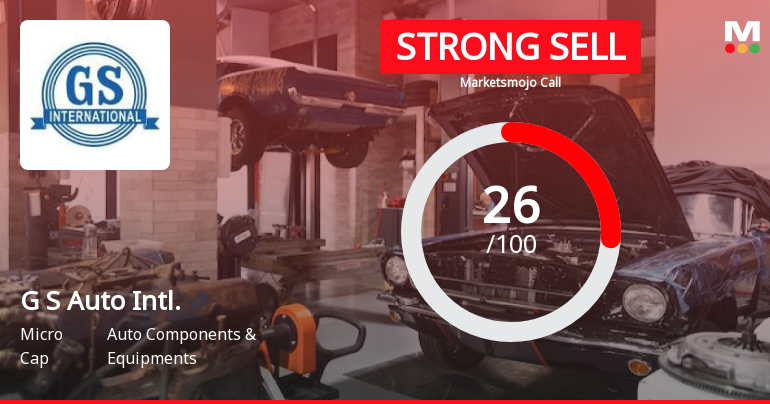 2026-01-28 10:10:51G S Auto International Ltd is rated Strong Sell by MarketsMOJO, with this rating last updated on 02 June 2025. However, the analysis and financial metrics discussed here reflect the stock's current position as of 28 January 2026, providing investors with an up-to-date view of the company’s fundamentals, valuation, financial trend, and technical outlook.
