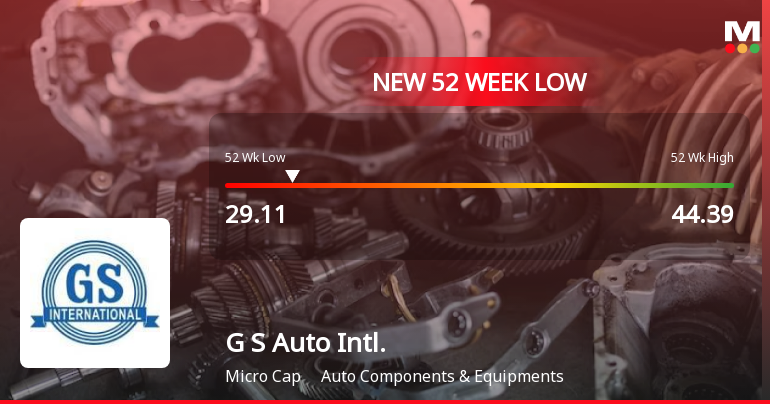 2026-01-21 11:58:39Shares of G S Auto International Ltd touched a fresh 52-week low of Rs.29.01 today, marking a significant decline amid broader market headwinds and company-specific factors. The stock’s performance continues to lag behind sector peers and benchmark indices, reflecting ongoing concerns about its financial metrics and valuation.