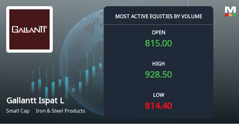 2026-04-16 14:00:06Gallantt Ispat Ltd., a small-cap player in the Iron & Steel Products sector, witnessed an extraordinary surge in trading volume and price on 16 Apr 2026, hitting a new 52-week and all-time high of Rs. 904. The stock outperformed its sector by 12.51% and the broader Sensex by a significant margin, signalling robust investor interest and accumulation amid heightened volatility.