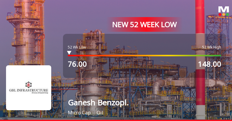 2026-01-19 10:35:12Ganesh Benzoplast Ltd, a player in the oil sector, has touched a new 52-week low of Rs.76 today, marking a significant decline in its stock price amid a broader market downturn and persistent underperformance relative to benchmarks and peers.