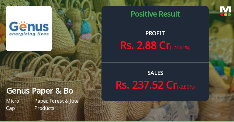 "description": "Genus Paper & Boards Ltd's latest financial results reflect a complex operational landscape. For the quarter ended December 2025, the company reported a consolidated net profit of ₹2.88 crores, which represents a significant year-on-year increase from ₹0.54 crores in the same quarter last year. However, this figure marks a quarter-on-quarter decline of 24.61%, indicating challenges in maintaining profitability on a sequential basis.\n\nRevenue for the same quarter was ₹237.52 crores, which shows an 11.46% improvement year-on-year from ₹213.09 crores, but also reflects a sequential decrease of 2.85% from ₹244.49 crores in the previous quarter. This pattern of declining revenue over two consecutive quarters raises concerns about the company's ability to sustain growth momentum.\n\nThe operating margin, excluding other income, contracted to 7.7% from 9.1% in the prior quarter, indicating pressures on operational e..."