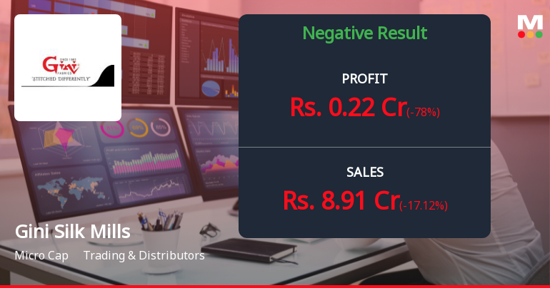 Gini Silk Mills Ltd., a Mumbai-based manufacturer of shirting and suiting fabrics under the "GINI" brand, reported a dramatic 69.49% sequential surge in net profit to ₹1.00 crore for Q2 FY26, yet the micro-cap company's shares remain trapped in a bearish technical trend, having plunged 38.24% over the past year. The company, with a modest market capitalisation of ₹35.00 crores, continues to grapple with anaemic operating margins of just 6.14% and a concerning year-on-year revenue decline of 1.56%, raising serious questions about the sustainability of its profitability rebound.
