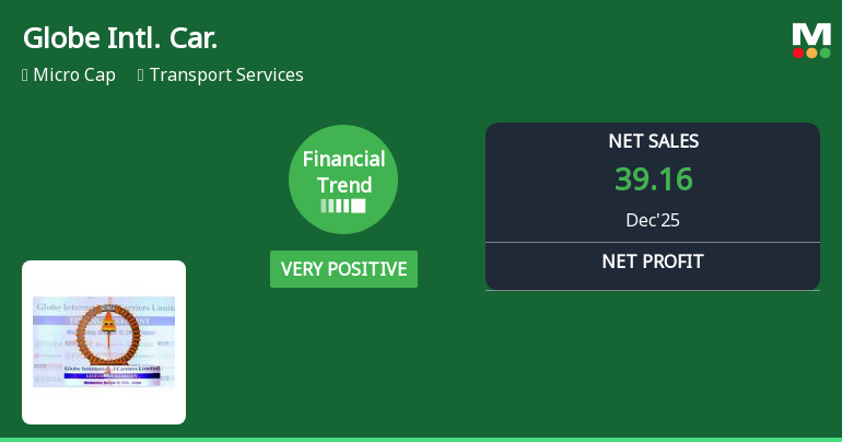 2026-02-17 08:49:15Globe International Carriers Ltd., a Jaipur-based transport services company with a market capitalisation of ₹522.00 crores, delivered an exceptional Q3 FY26 performance with consolidated net profit surging 185.62% year-on-year to ₹4.37 crores. The micro-cap logistics player demonstrated remarkable operating leverage, with operating margins expanding to 21.52% from 7.07% in the year-ago quarter, driven by robust revenue growth of 23.49% to ₹47.31 crores.