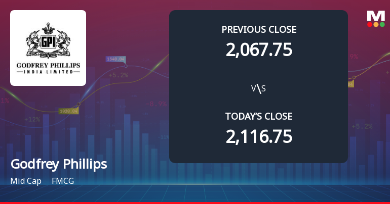 2026-03-07 10:10:38Godfrey Phillips India Ltd. is rated 'Sell' by MarketsMOJO, with this rating last updated on 23 February 2026. However, the analysis and financial metrics discussed here reflect the stock's current position as of 07 March 2026, providing investors with an up-to-date perspective on the company’s fundamentals, valuation, financial trends, and technical outlook.