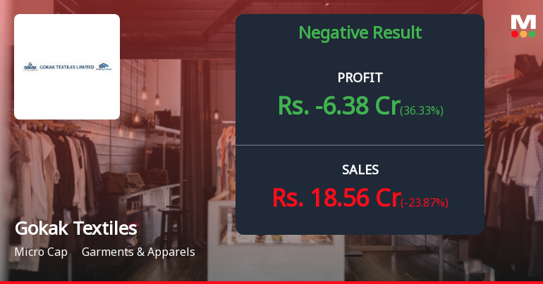 2026-02-12 21:48:31Gokak Textiles Ltd., a micro-cap player in the garments and apparels sector, reported a consolidated net loss of ₹6.38 crores for Q3 FY26, marking a deterioration of 36.33% year-on-year from the ₹10.02 crores loss recorded in Q3 FY25. The company's struggles intensified on a sequential basis, with losses narrowing by 53.87% quarter-on-quarter from the ₹13.83 crores loss in Q2 FY26, though this improvement came against a backdrop of continued revenue erosion and mounting operational pressures.
