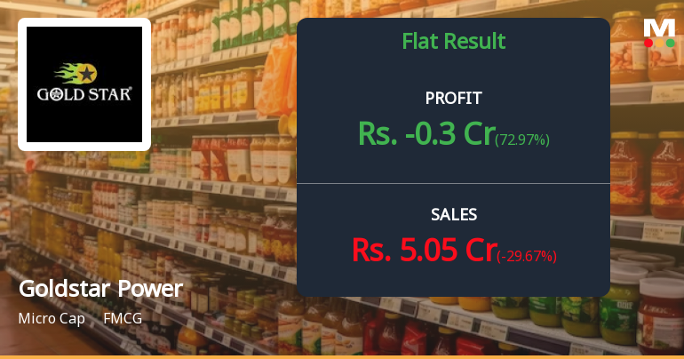 2026-02-07 17:48:33Goldstar Power Ltd., a micro-cap FMCG company with a market capitalisation of ₹137 crores, reported a dramatic 1,188% quarter-on-quarter revenue surge to ₹126.74 crores in Q2 FY26, but the headline growth conceals a troubling erosion in profitability. Net profit stood at ₹0.70 crores, virtually flat at -1.41% QoQ, whilst operating margins collapsed from 13.62% to a mere 0.43%, raising serious questions about the sustainability of the company's business model. The stock, currently trading at ₹4.80, has plunged 55.76% over the past year, significantly underperforming the Sensex's 7.07% gain.