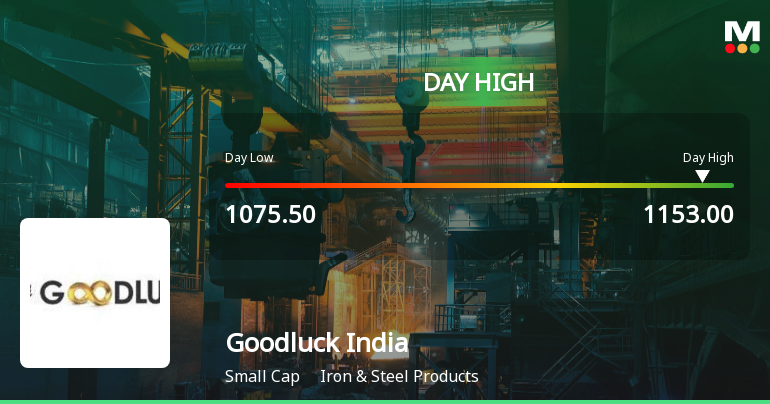 "description": "Goodluck India Ltd demonstrated robust intraday performance on 3 Feb 2026, surging to an intraday high of Rs 1,153, marking an 8.11% rise and closing the day with a 7.76% gain. This notable uptick outpaced both its sector and the broader market indices, reflecting strong trading momentum within the Iron & Steel Products industry."
